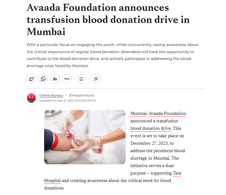 Blood Donation Drive In Collaboration With Tata Hospital To Address Mumbai’s Blood Shortage Crisis